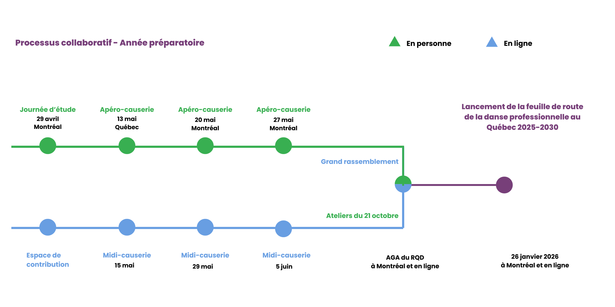 Processus ayant mené à la Feuille de route de la danse professionnelle au Québec 2025-2030.