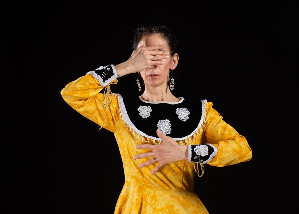 J’ai vécu à Kahnawake, au Québec, dans mes premières années, puis j’ai déménagé en Nouvelle-Écosse à un jeune âge. Je dansais toujours à la maison et j’ai fini par suivre mes premiers cours » officiels » de ballet classique, que j’ai étudiés pendant de nombreuses années. Ayant grandi dans une ferme dans un petit village, j’avais très peu accès à la danse et peu de contacts avec ma communauté mohawk. Comme il me semblait peu probable que je puisse devenir une danseuse professionnelle avec des ressources aussi limitées, j’ai pris un peu de recul et décidé de me tourner vers le théâtre. Cela m’a amenée à étudier à l’Université Concordia à Montréal, étonnée et submergée par la scène dynamique des arts de la scène ici.