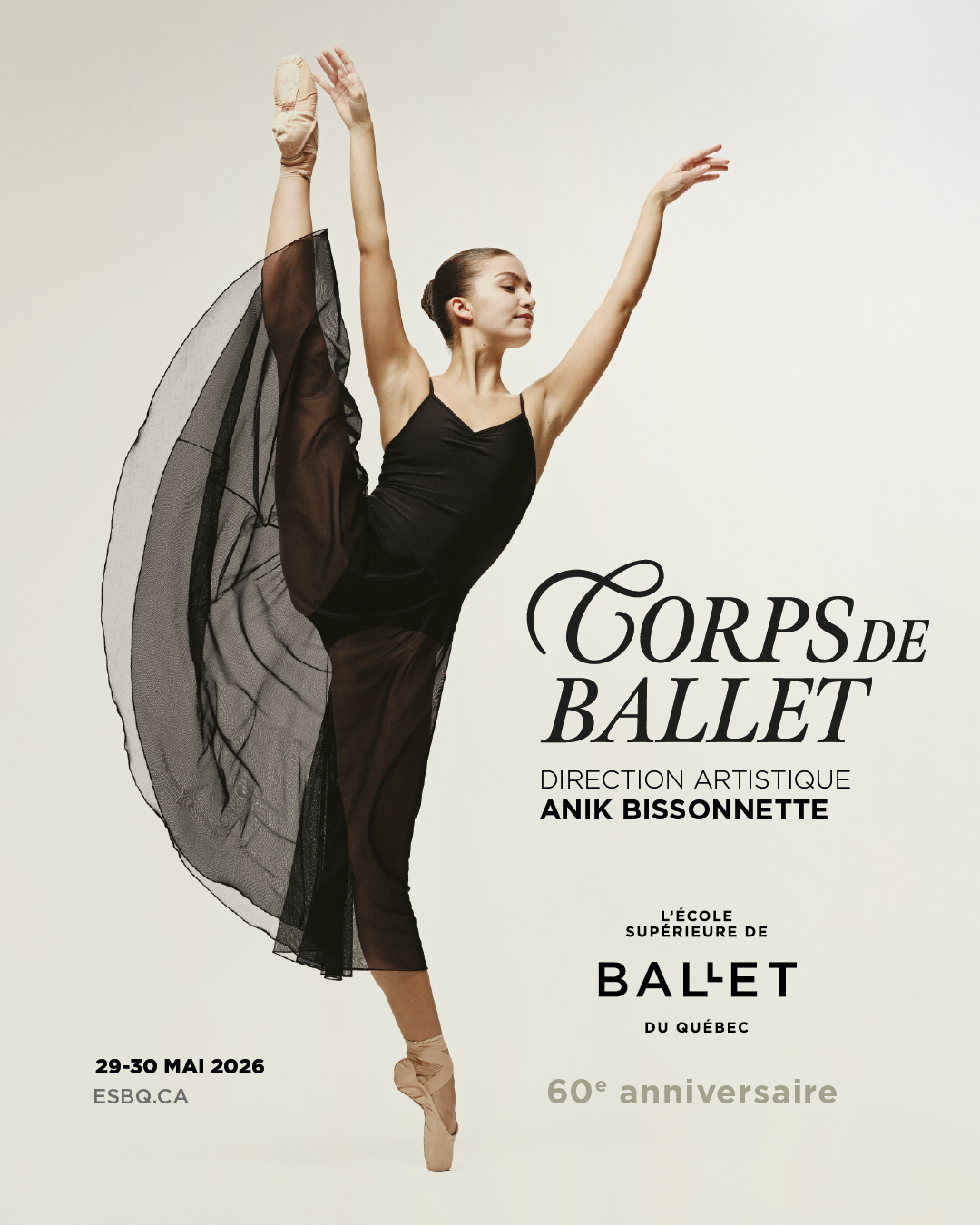 À l’occasion de son 60e anniversaire, l’École supérieure de ballet du Québec présente une édition spéciale de Corps de ballet. Près de 120 élèves du programme danse-études y interprèteront des œuvres qui traversent les styles et le temps : répertoire classique, créations contemporaines, ainsi qu’inspirations du flamenco et des danses tziganes.