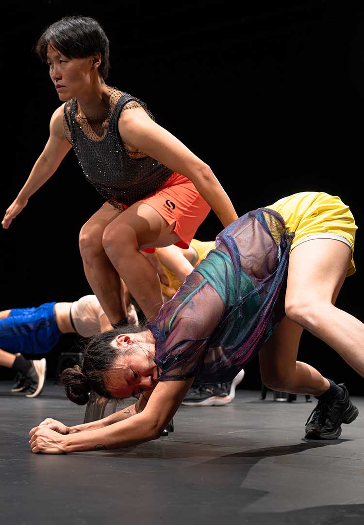 Privilégiant l’intime, cette installation chorégraphique pour quatre performeuses explore la puissance née du bas du corps.
