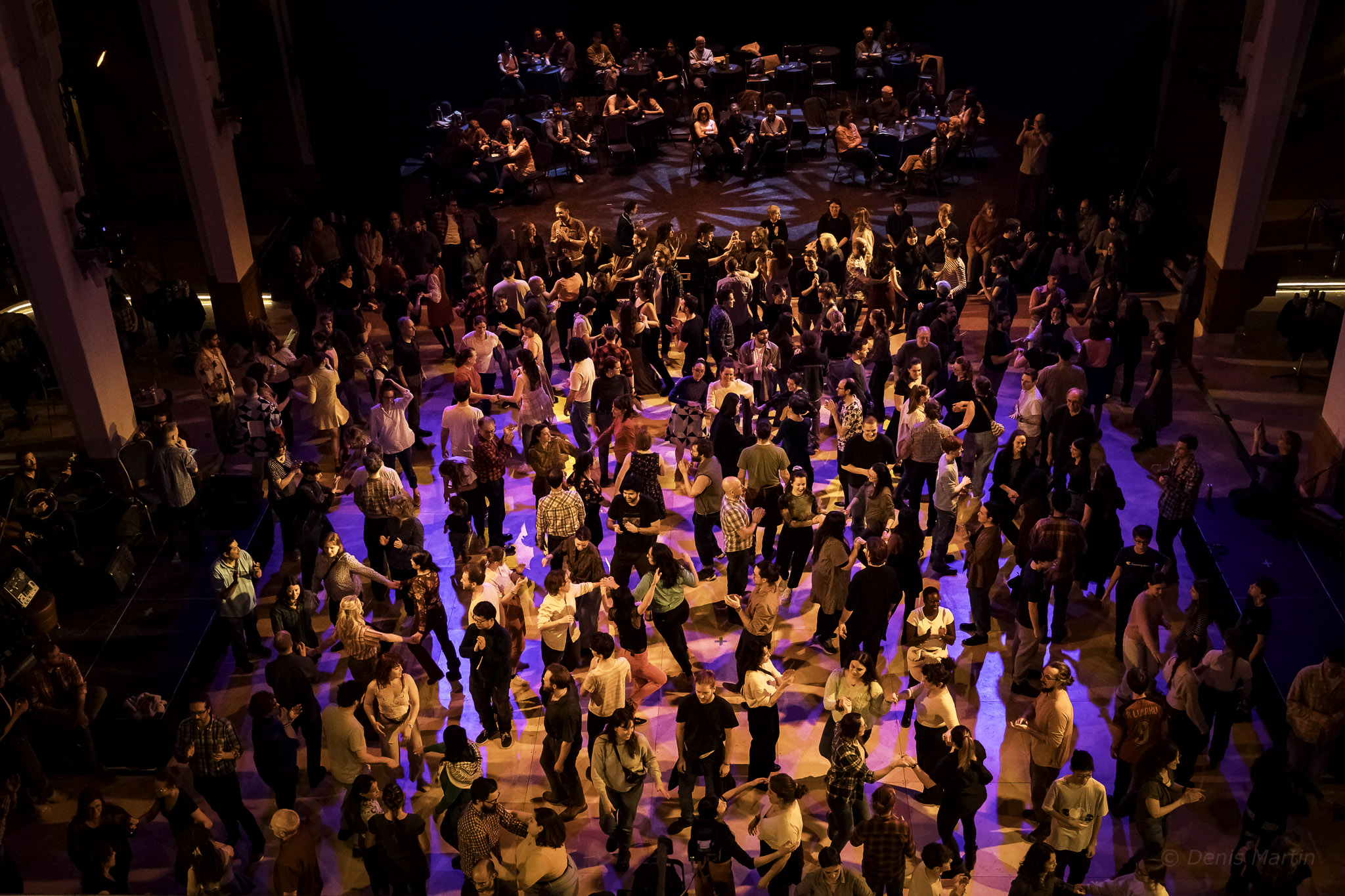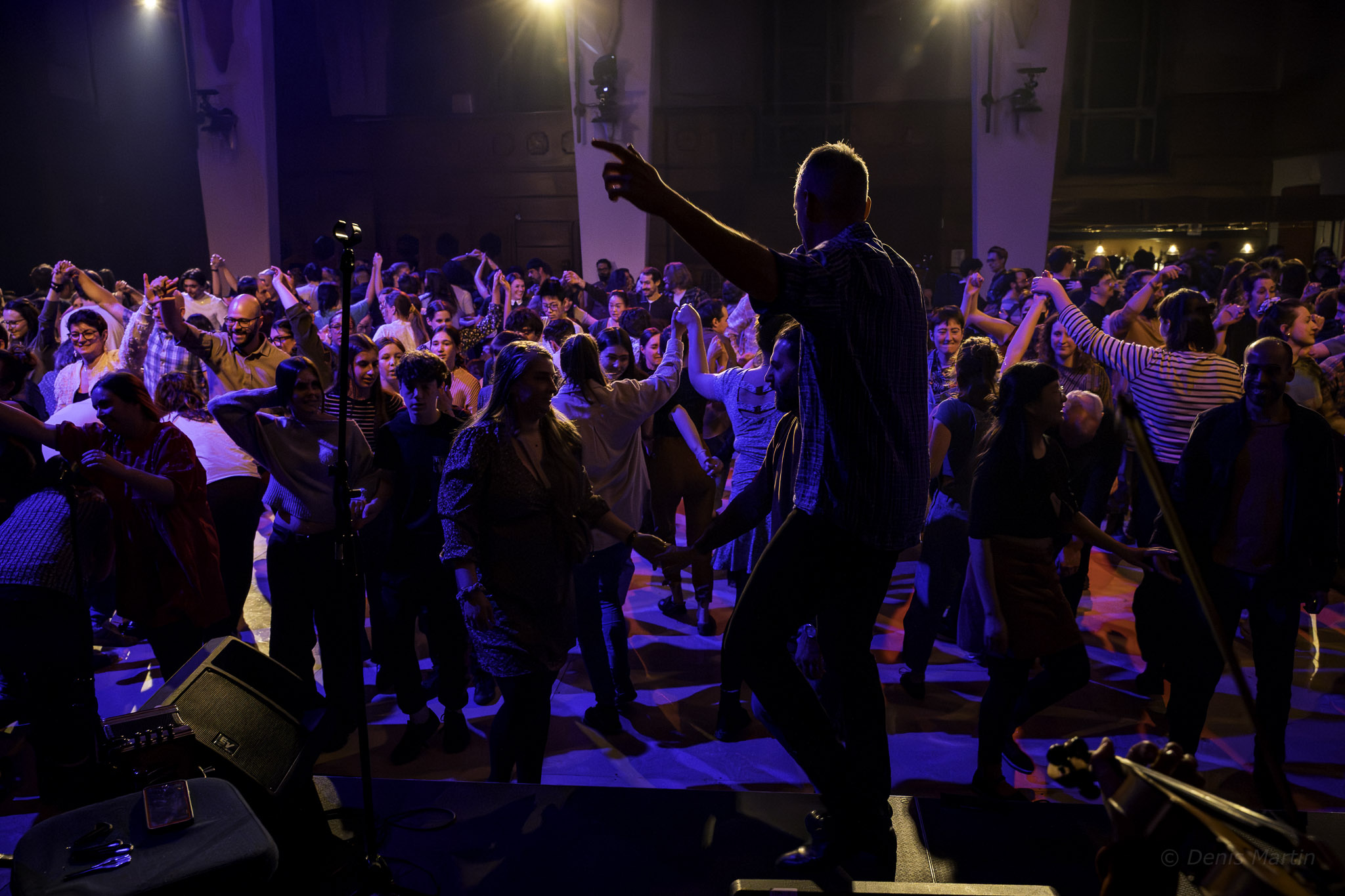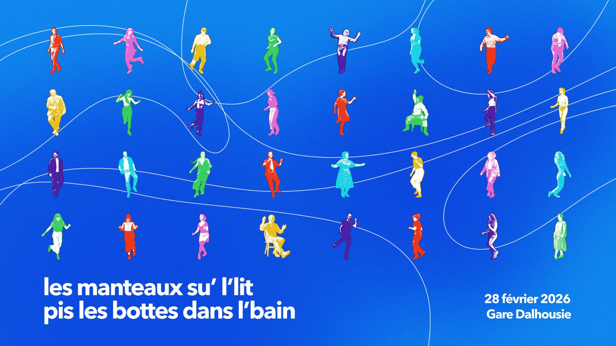 Les manteaux su’ l’lit pis les bottes dans l’bain est un concept singulier hybride pensé comme une expérience immersive et actuelle de la veillée de danse câllée : un rassemblement festif basé sur la pratique collective de danses traditionnelles québécoises, incarnation du patrimoine et de la diversité culturelle du Québec. Le concept mêle à la fois moments de performances et tente d’effacer la frontière entre les artistes (de La R’voyure et invité.es) et les spectateurs, en les rendant acteurs et porteurs de ce patrimoine culturel.