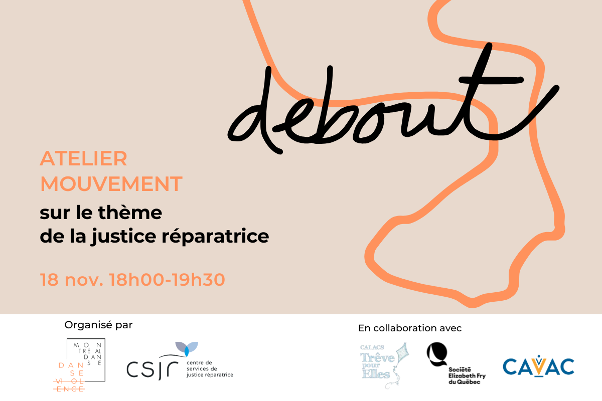 PurchaseOn the occasion of Restorative Justice Week, held from November 16 to 23, 2025, Montréal Danse is partnering with the Centre de services de justice réparatrice (CSJR) to offer a movement workshop grounded in sensitivity and care.